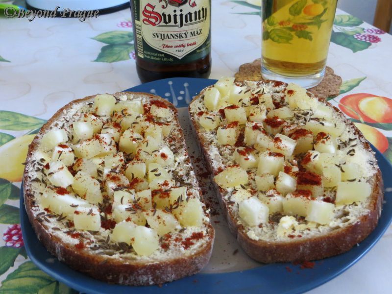 After taking a look at the impressive culinary flexibility of this cheese in the recipe section of its manufacturer’s website, I chose a simple option of chopped Tvarůžky on bread with cumin and paprika sprinkled over top and accompanied by a cold beer.