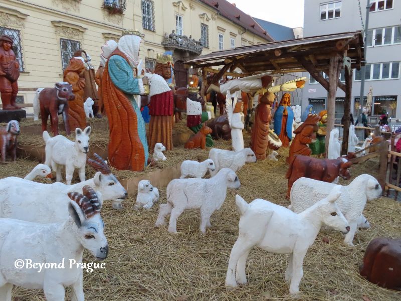 Since being added to the Christmas market, the Dominican square section has become the home of the market’s main nativity scene. This is one of the largest hand-carved nativity scenes in Central Europe. It features over 100 life sized figures carved by Jiří Halouzek, who is based in the north-east of the country.