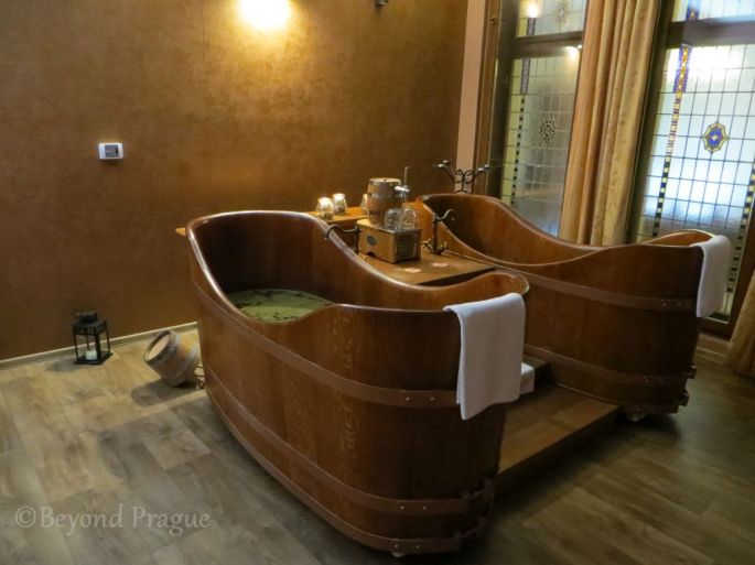 Our hotel was Kyjvoský pivovar; a hotel, microbrewery and wellness centre all in one. Their beer spa is the heart of their wellness services and we spent about an hour soaking in tubs of hops infused water and enjoying a pint of the hotel’s own beer straight from a tap between the lovely wooden tubs.