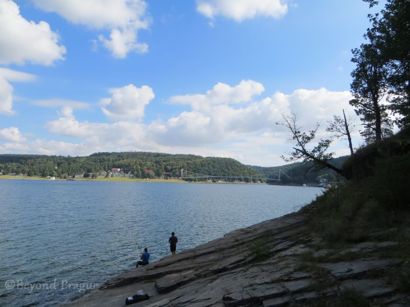 A system of transport boats operates to take visitors around the reservoir for both sightseeing and to visit castles, such as Bítov and Cornštejn, which overlook it.