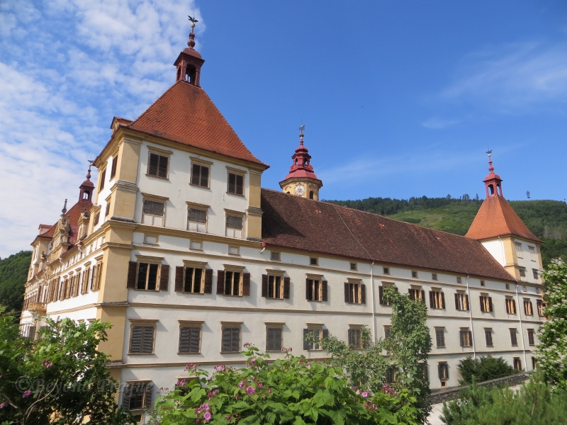 In the well kept gardens of Eggenberg; one can enjoy a variety of plants and flowers, view many statues or simply enjoy the comings and goings of the many peacocks wandering the grounds.